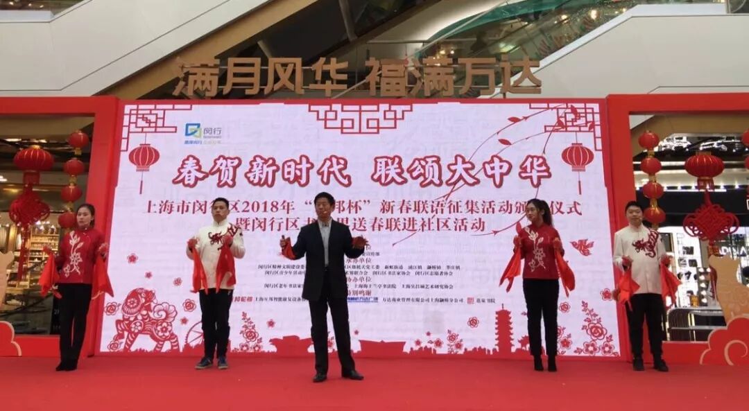在十九大精神的指引下,闵行区于戊戌新春来临之际,以“春贺新时代,联颂大中华”为主题,举办第二届“互邦杯”新春联语征集和书法家送春联进社区活动,用春联来迎接新时代,描摹新发展,表达新愿景,鼓舞广大的党员干部和群众为实现中华民族伟大复兴中国梦加油,为建设生态宜居卓越美丽新闵行出力。