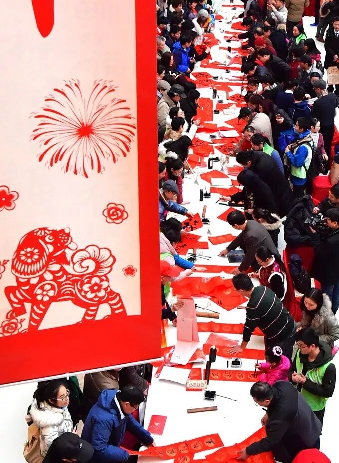 莘庄镇的美博艺术馆连续二年设立了春联活动的分会场,活动现场更是少不了一派热闹的气氛。市民穿梭在窗花剪纸和春联当中,感受到的是满满的年味和祝福。